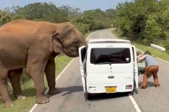 News Horror moment elephant attacks tourist van forcing terrified family to flee after beast tore off door when offered food themefreesiaJanuary 26, 2026