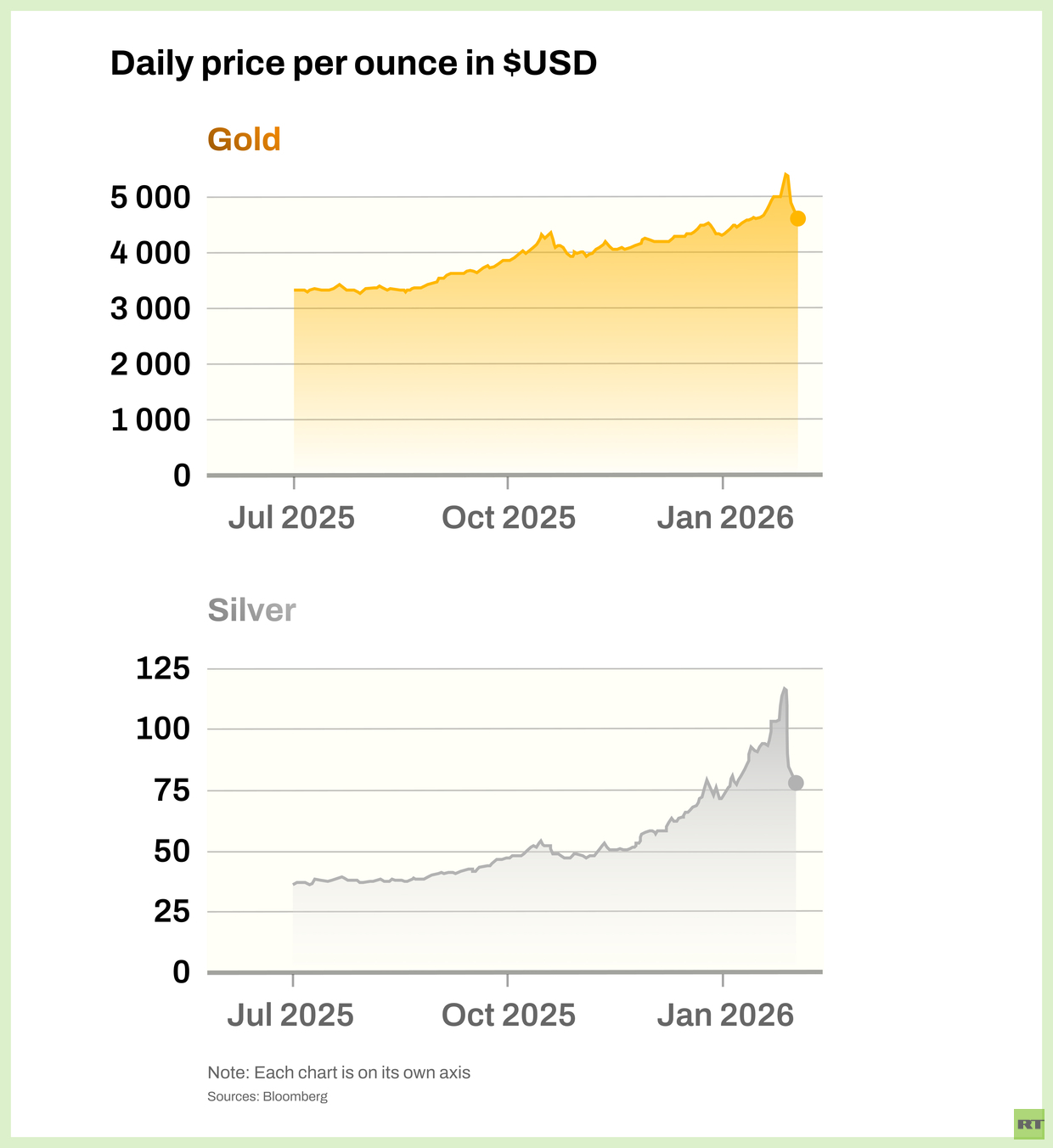 Gold and silver extend slide after record-breaking rally