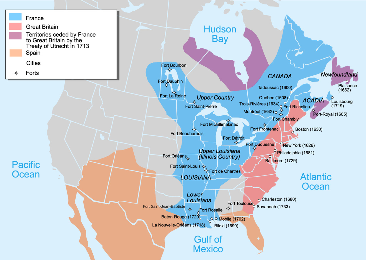 As a result, France didn’t particularly value this territory, despite its huge size: French Louisiana encompassed not just modern-day Louisiana but, either partially or wholly, the modern states of Arkansas, Oklahoma, Kansas, Missouri, Colorado, Wyoming, North and South Dakota, Minnesota, Iowa, Montana, Nebraska, Texas, New Mexico, and even parts of Canada. Despite this, however, it was hard to find a Frenchman beyond New Orleans.