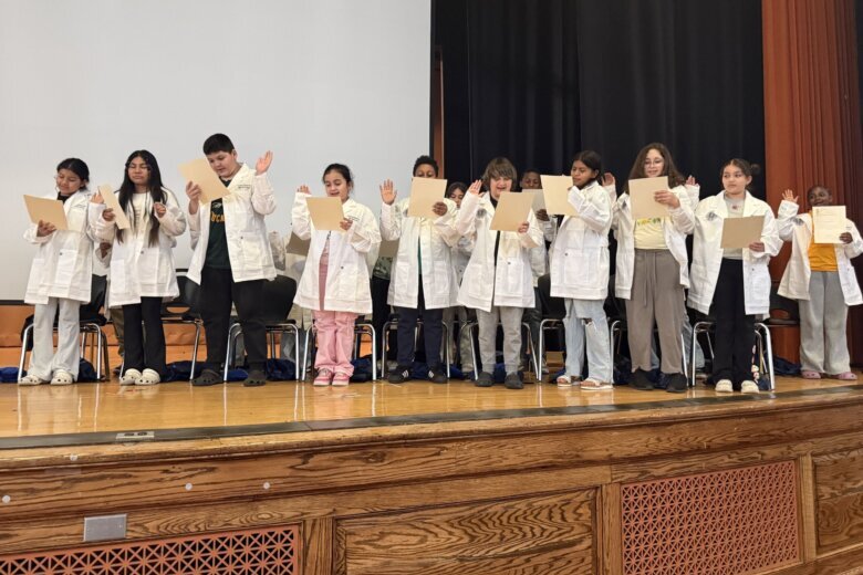 Hayes-Dixon presented each of the young students with their white coats, which were purposely several sizes too big for them.
