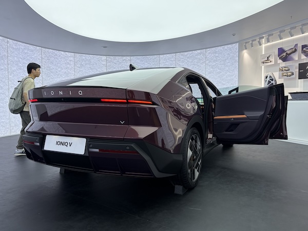 At the Show, Hyundai officially (and belatedly) launched the Ioniq NEV brand in China. It did so with the Ioniq V, a strikingly angular vehicle, as per the brand’s usage of exploring new design frontiers. The dashboard features the now mandatory digital tile expanding to the passenger side.