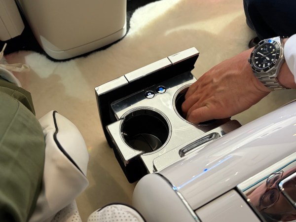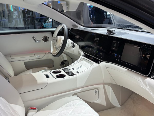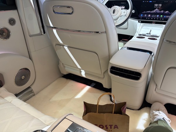 And what an interior! Obviously the dashboard is a giant side-to-side digital tile with three screens. The space at the back (most owners will be driven around) is gigantic with a full on rug at your feet.